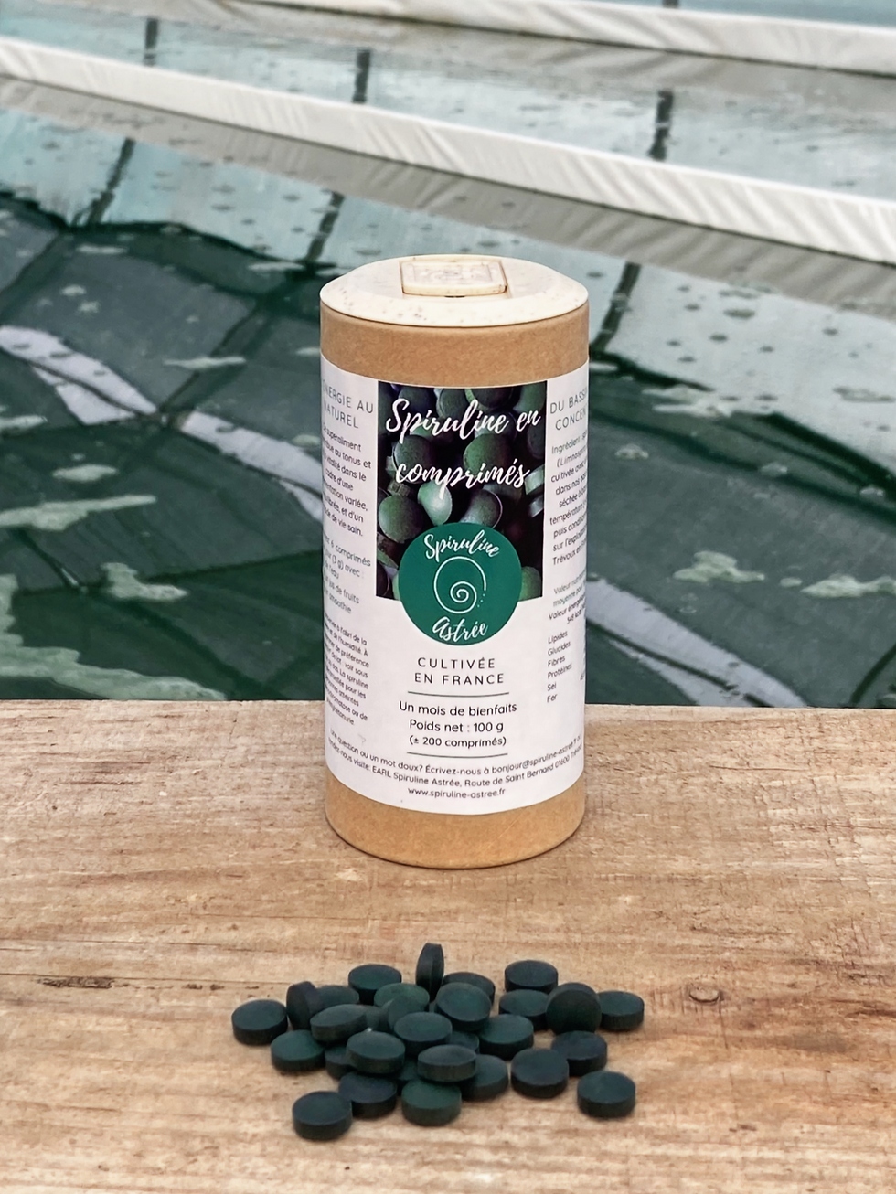 Spiruline écologique et française cultivée à Trévoux dans l'Ain, directement du bassin à votre assiette.